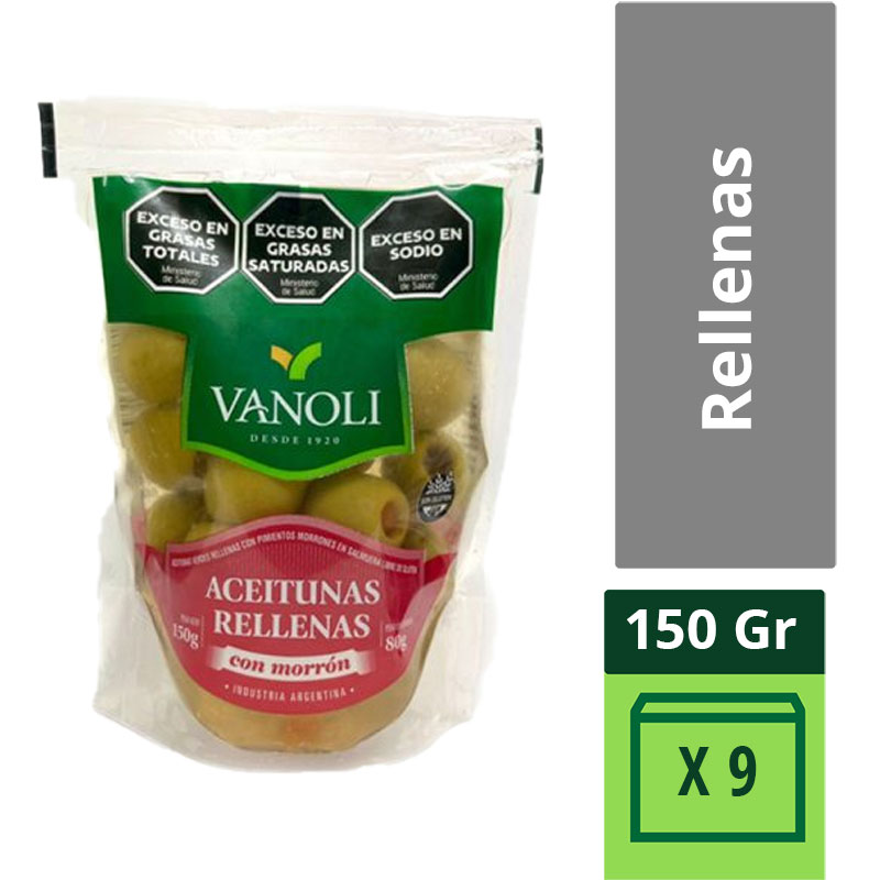 Aceitunas Verdes Vanoli Rellenas Con Morrón Doy Pack X 150 Gr