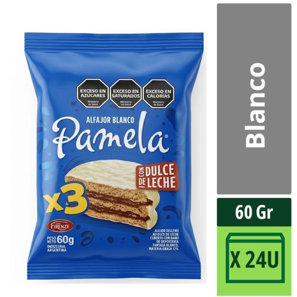 Alfajor Pamela Blanco Triple Relleno de Dulce De Leche X 60 Gr