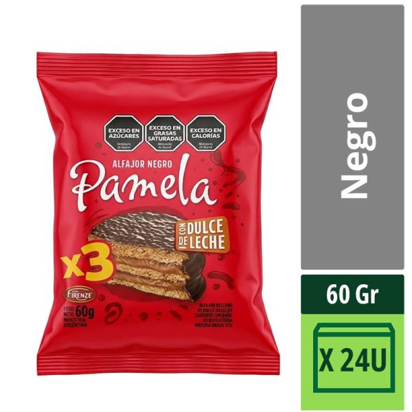 Alfajor Pamela Negro Triple Relleno de Dulce De Leche X 60 Gr