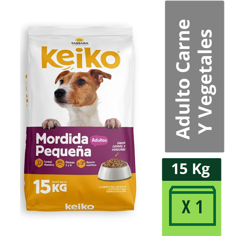 Alimento Keiko Adulto Mordida Pequeña Sabor Carne Y Vegetales X 15 Kg