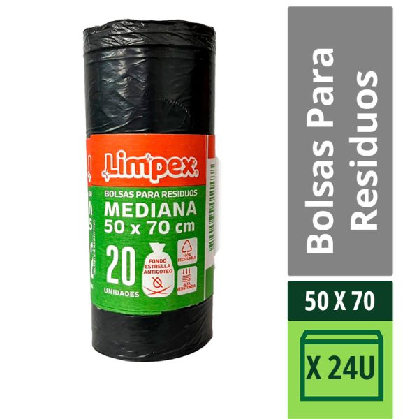 Bolsa Para Residuos Limpex Mediana 50 X 70 Cm X 20 Unidades