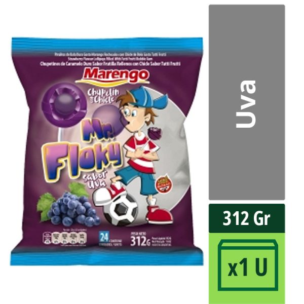 Chupetín Mr Flocky Marengo Con Chicle Uva X 24 Un