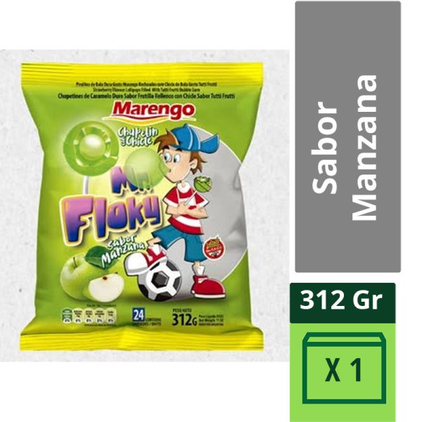 Chupetín Mr Floky Marengo Con Chicle Manzana Verde X 24 Unidades