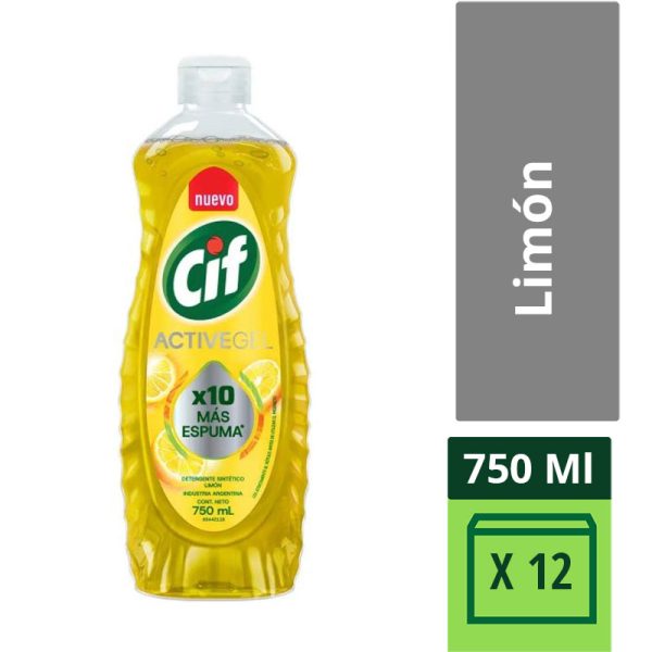 Lavavajillas Cif Active Gel Limón Botella X 750 Ml