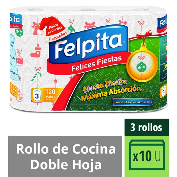 Rollo De Cocina Felpita Decorado Navidad X 3 Rollos