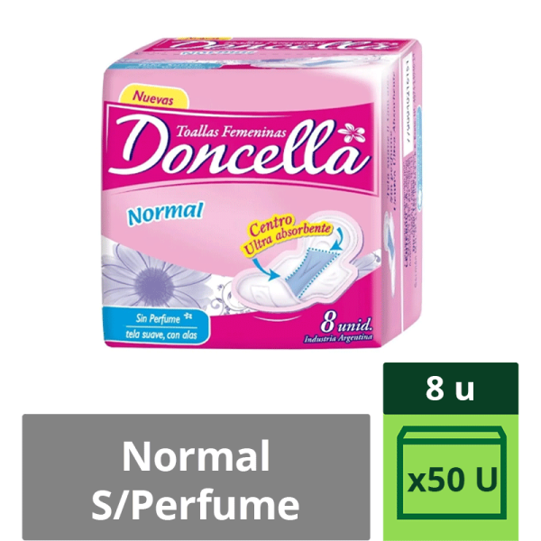 Toallitas Femeninas Doncella Normal S/Perfume C/Alas X 8 Unidades